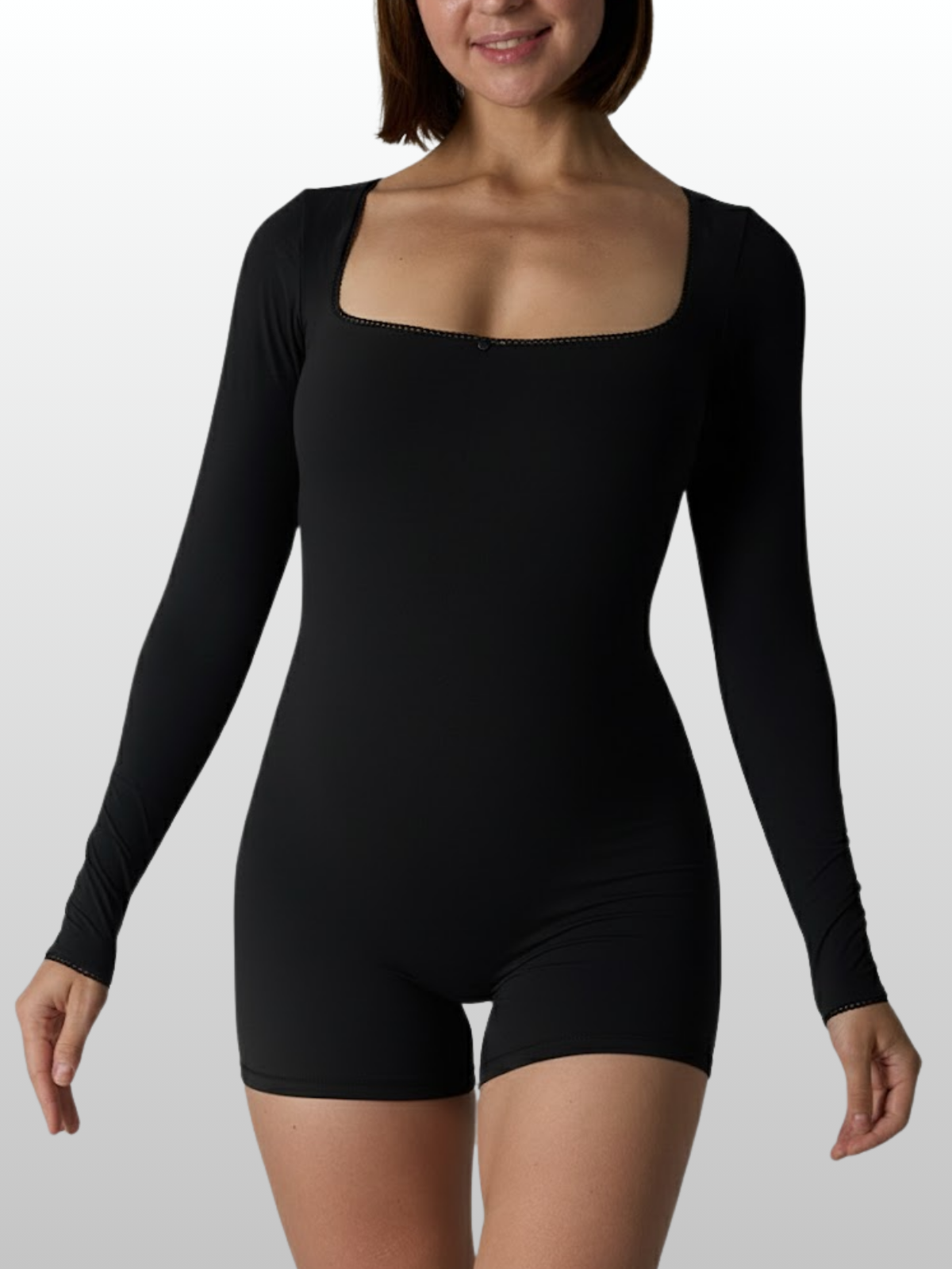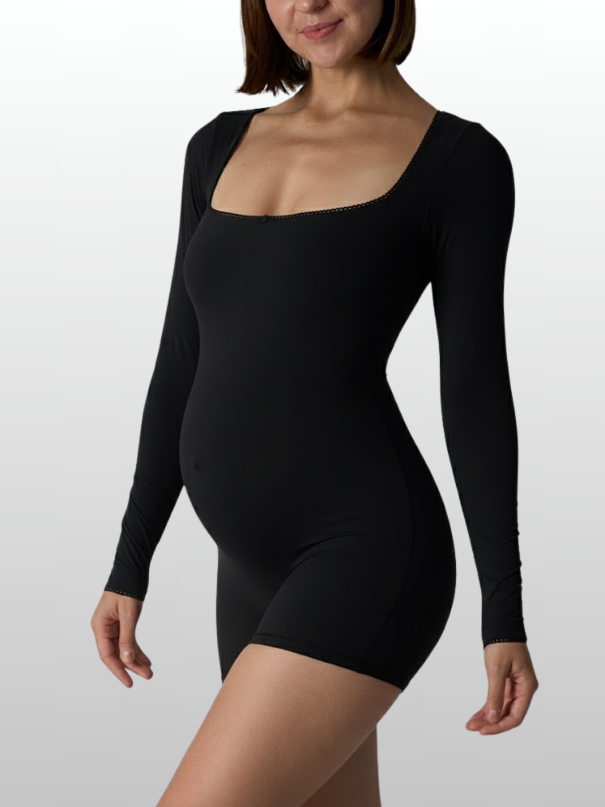 mumshape™ Nahtloser Square-Neck Still- & Umstands-Romper - Langarm Ultra-Stretch Fit