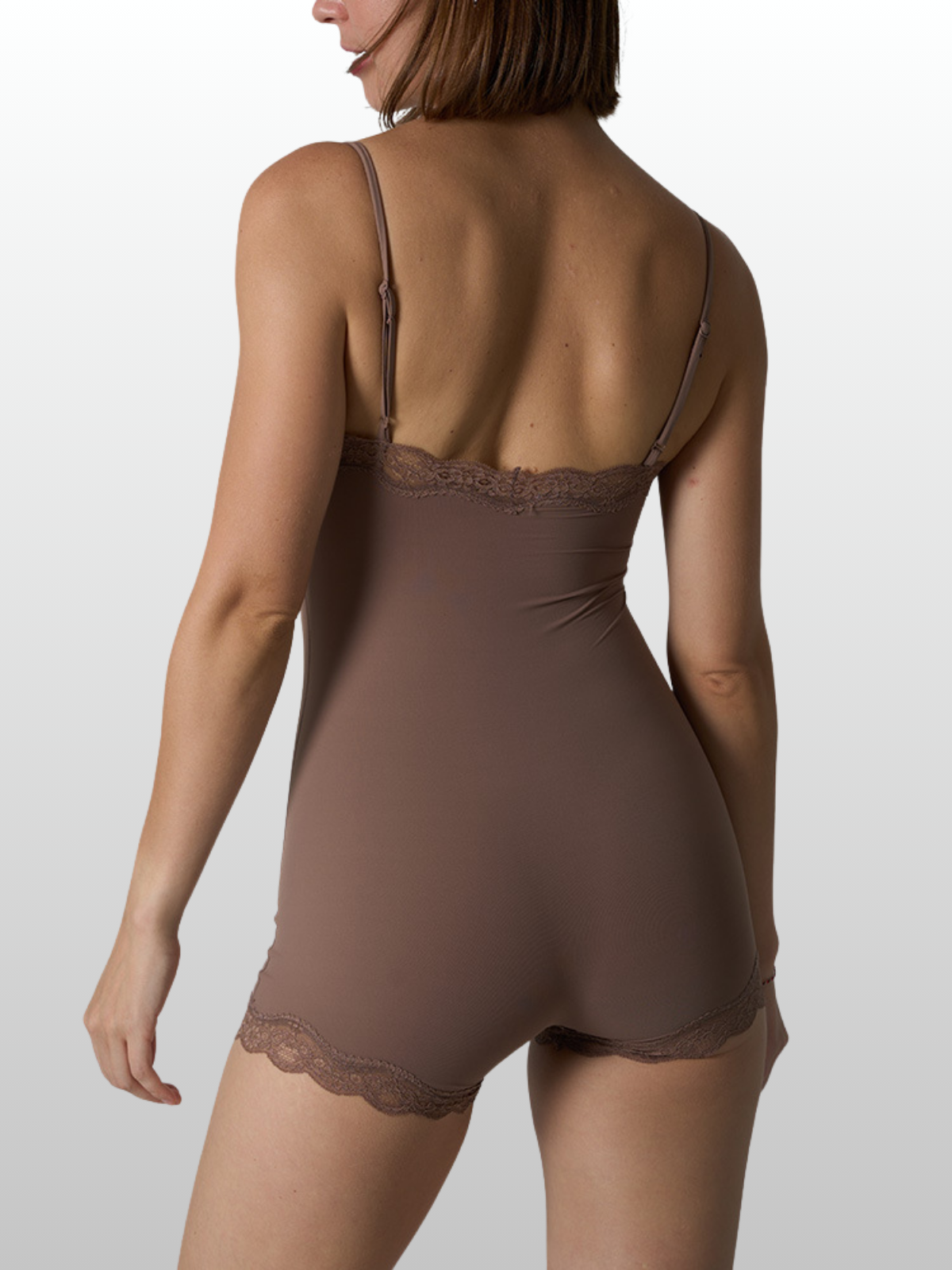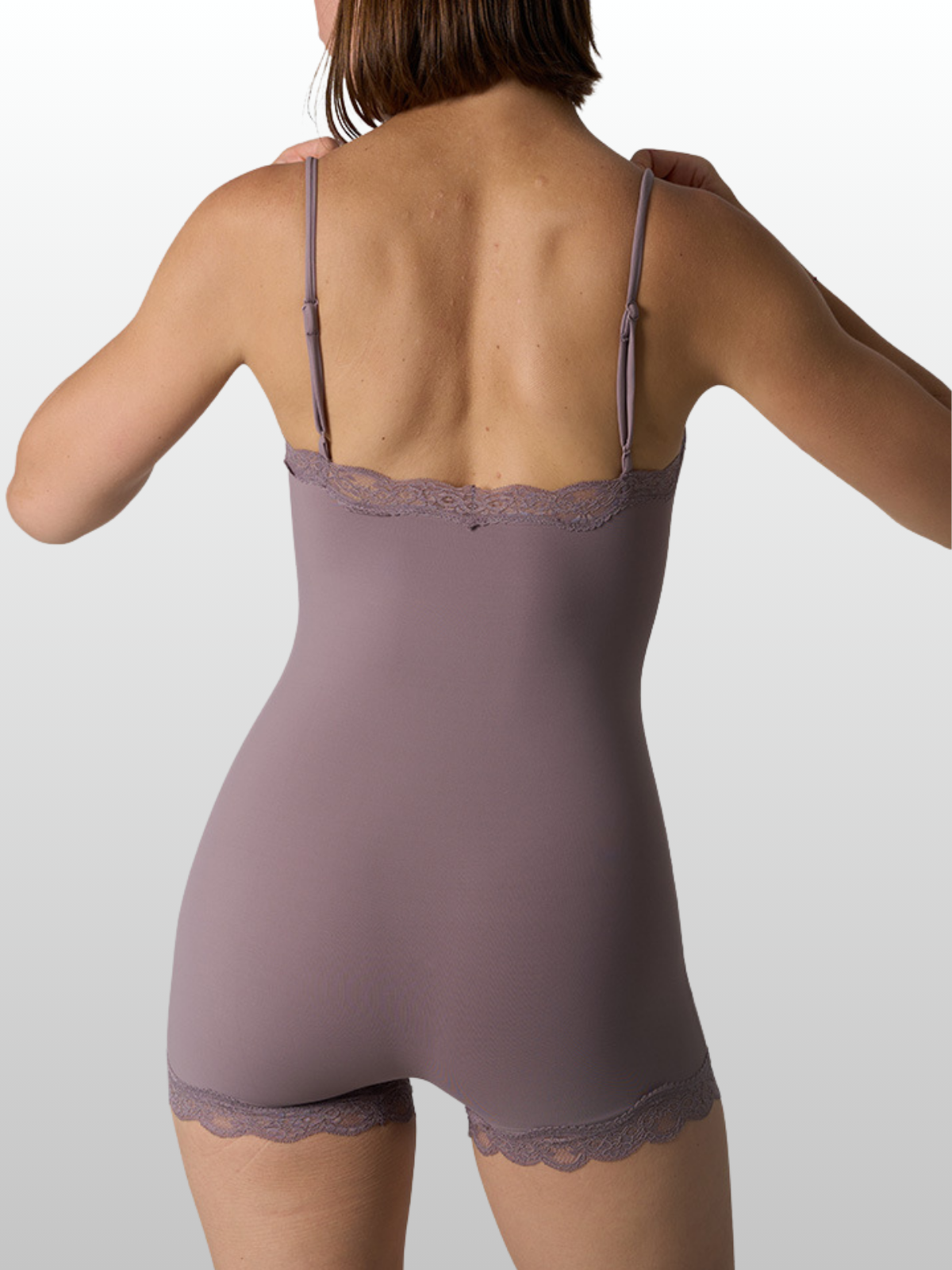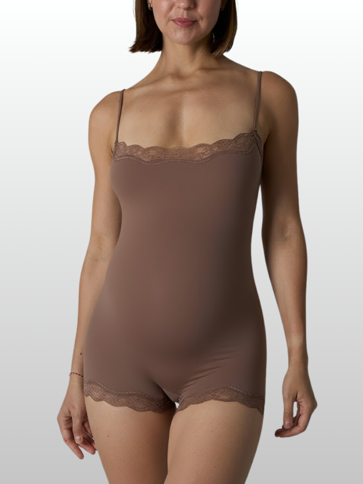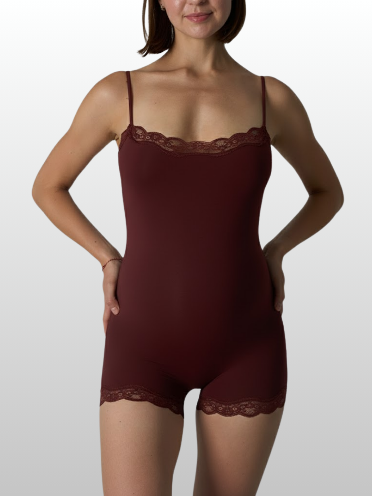mumshape™ Lace Trim Spaghetti Strap Bodycon Umstands-Romper - Spitzenbody für Schwangerschaft & Stillzeit
