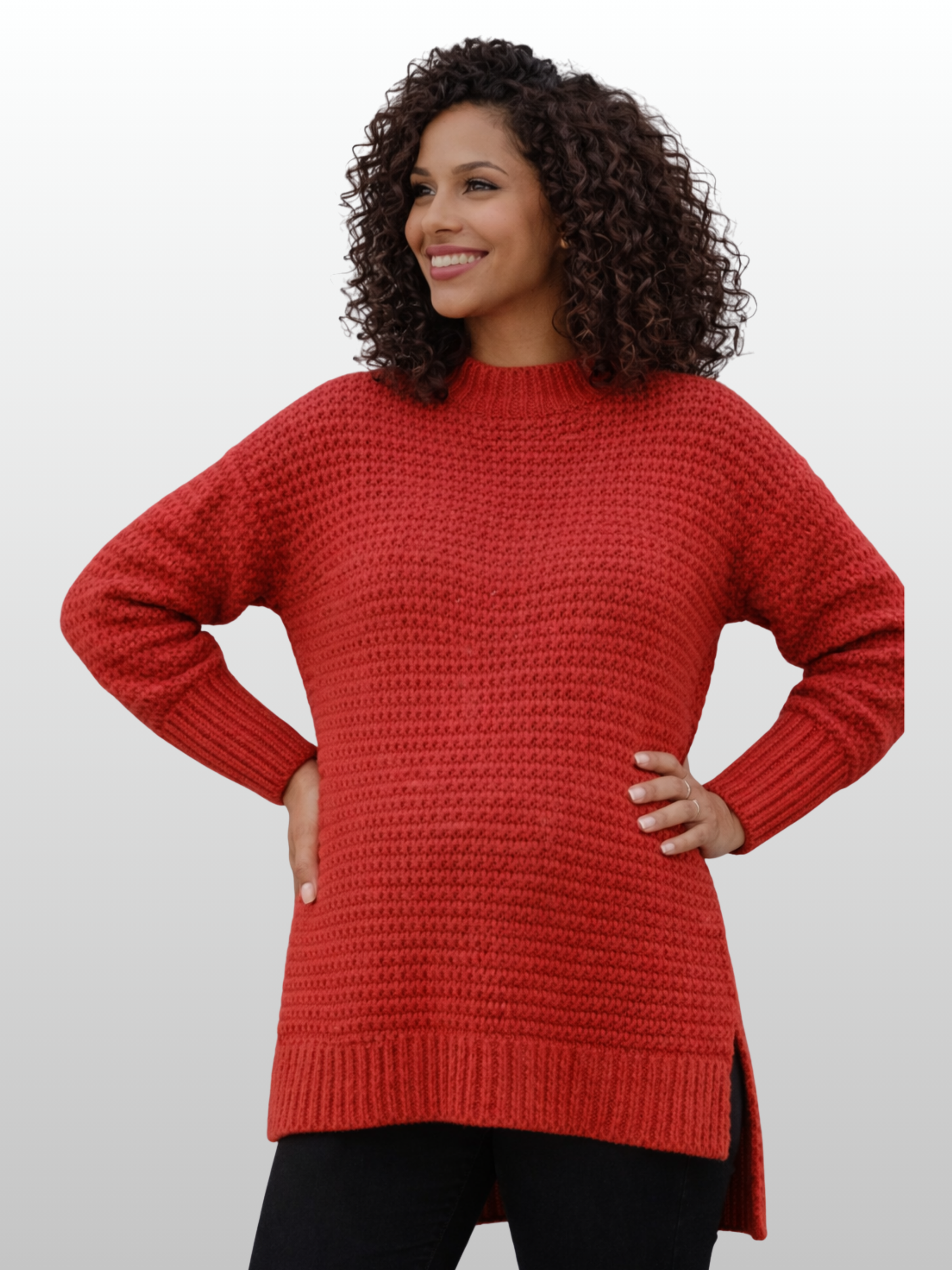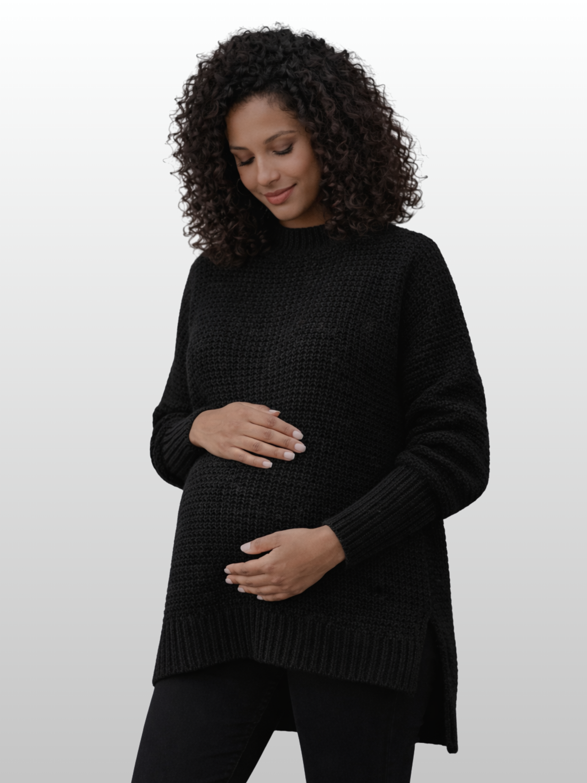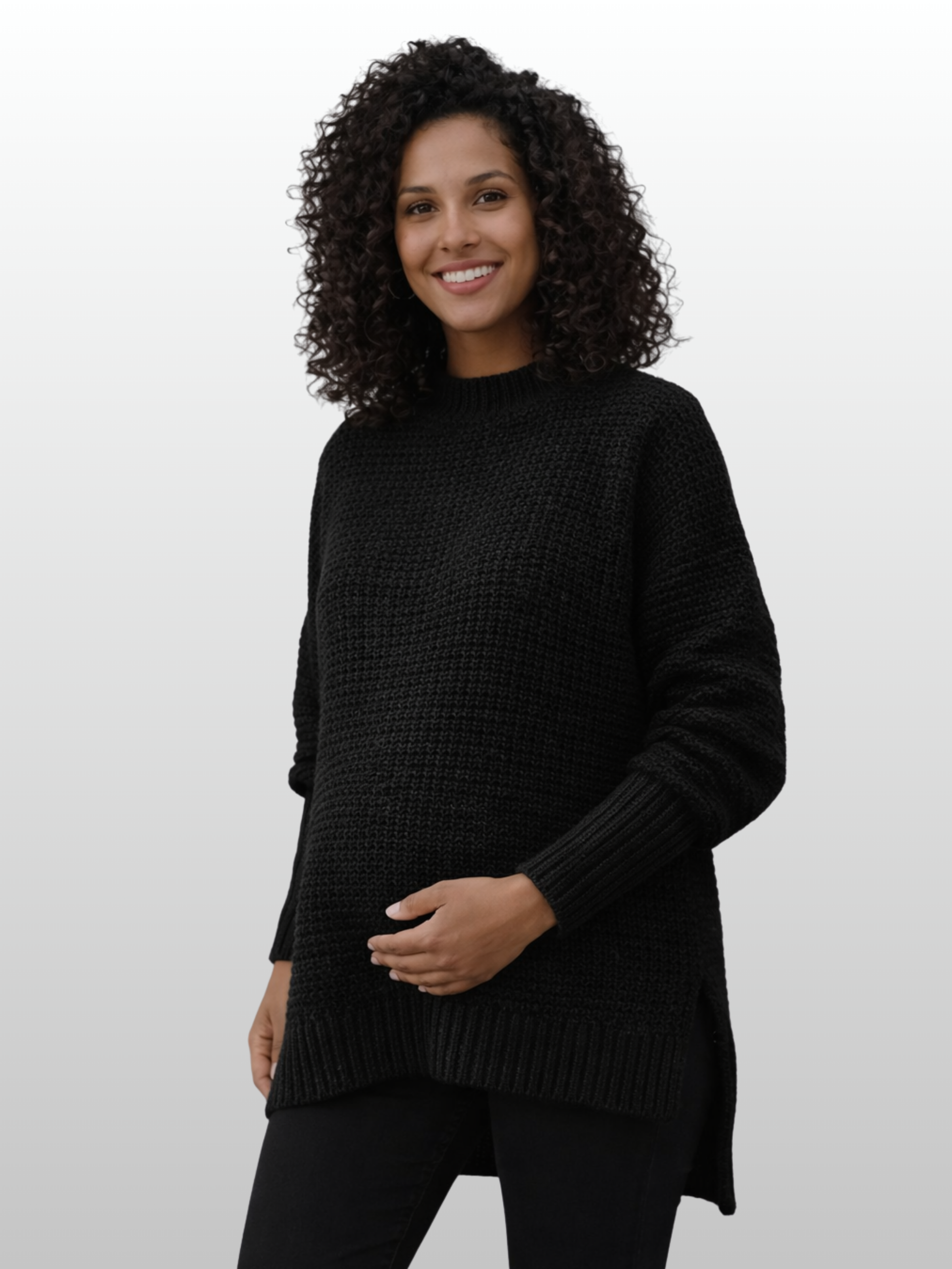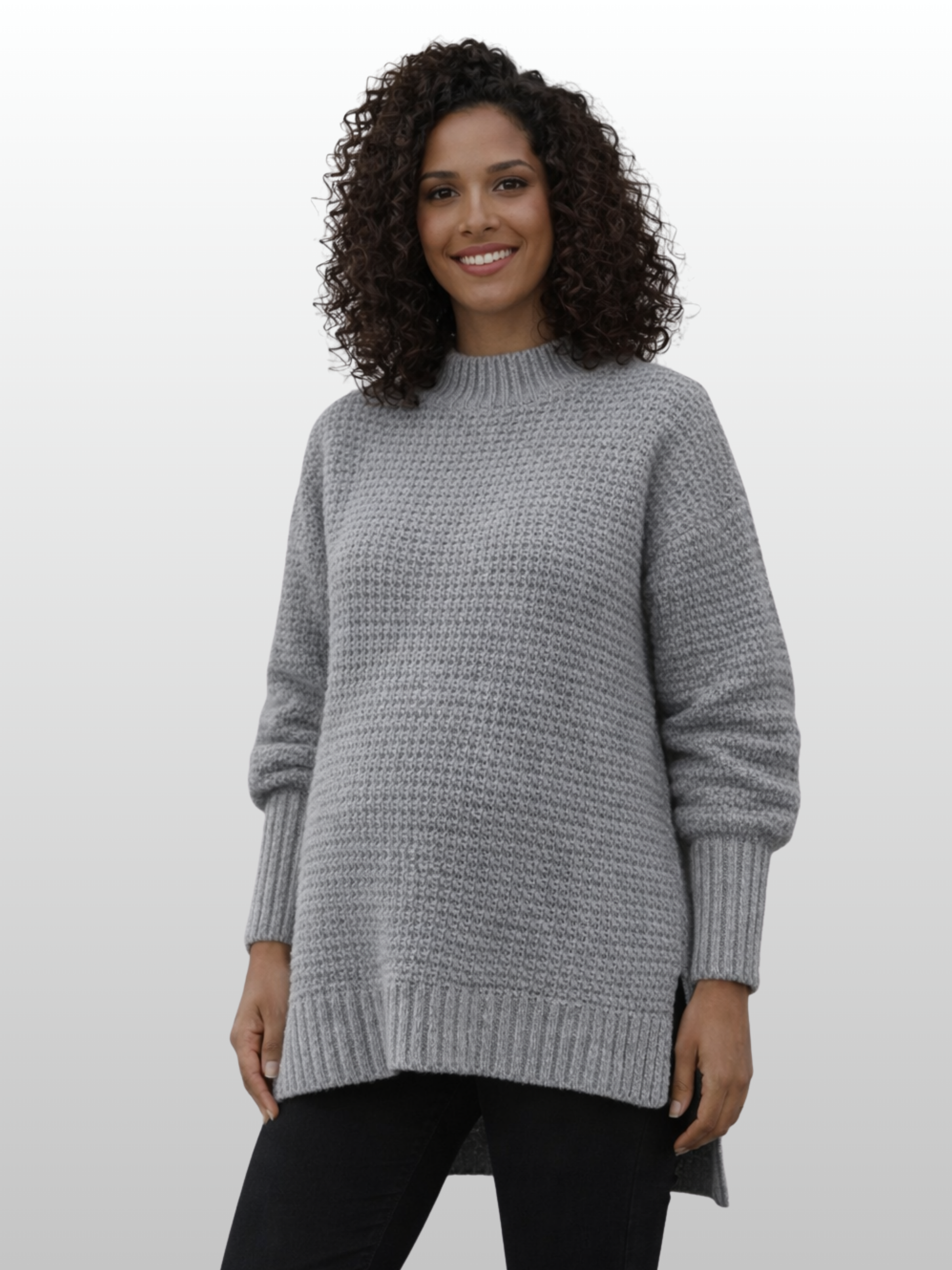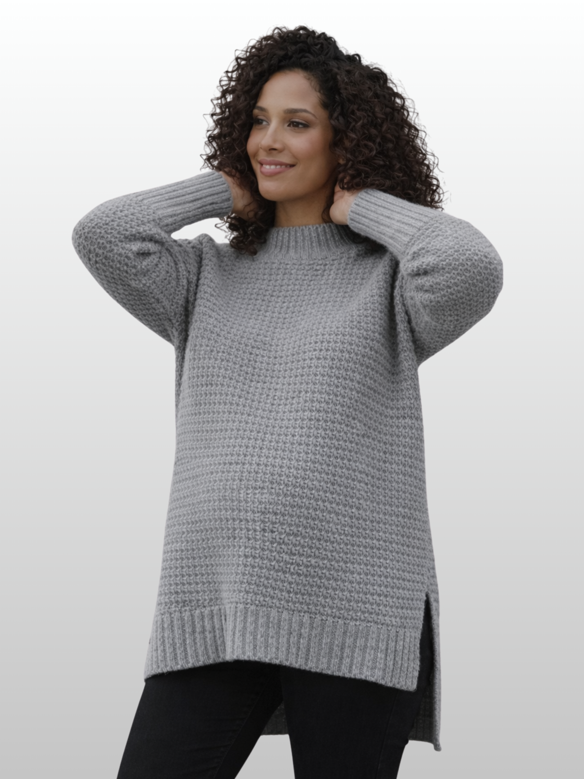Schlüpfe in Komfort für jede Jahreszeit: Modische Umstandsmode, die sich mit dir verändert. Dieser Pullover versteht, dass dein Körper Raum braucht – die Seitenschlitze geben dir die Flexibilität, die du brauchst, ohne dass der Look darunter leidet. Einfach anziehen und dich wohlfühlen.