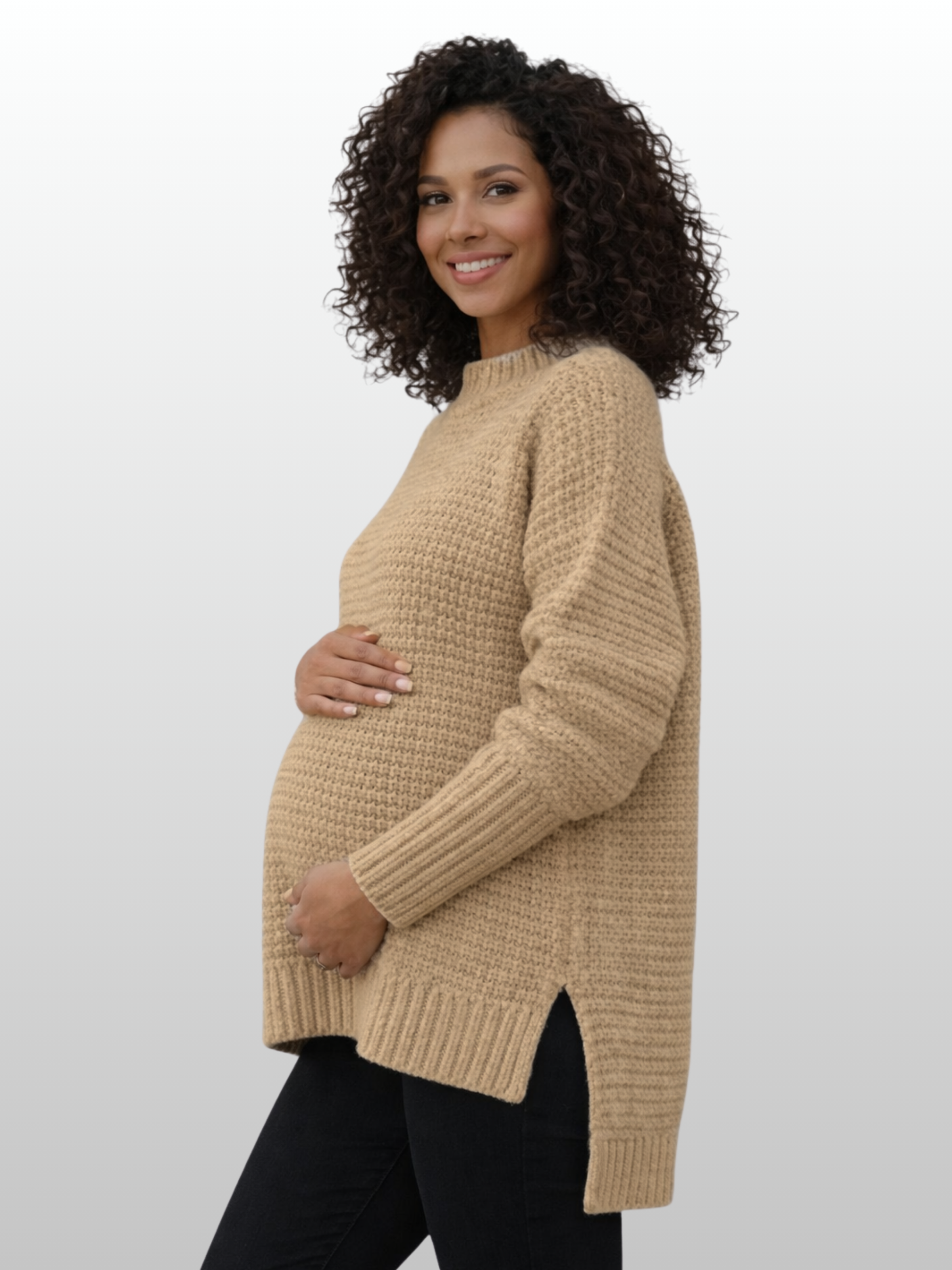 Ideal für: Werdende Mütter, die einen stilvollen Pullover für kalte Tage suchen, der sich dem wachsenden Bauch anpasst und sich für Reisen, Events, Smart-Casual-Büros und den urbanen Alltag eignet. Perfekt, wenn du nicht zwischen Komfort und Stil wählen möchtest.